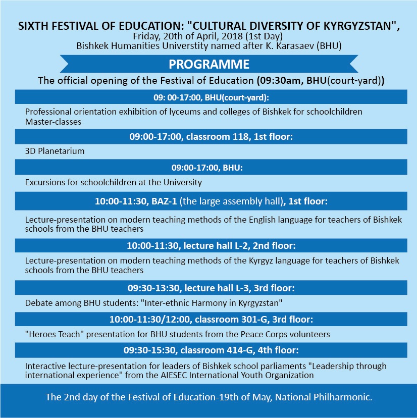 Programme of the VI Festival of Education «Cultural Diversity of Kyrgyzstan»