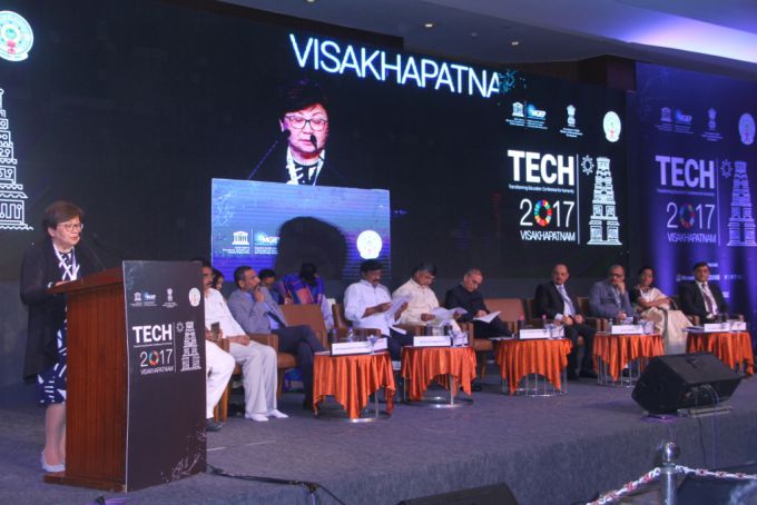 The International Conference TECH-2017 in Visakhapatnam was officially opened on behalf of UNESCO by R. Otunbayeva a member of the Council of the Institute of Mahatma Gandhi.