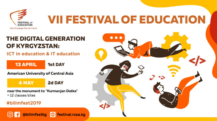 Within the framework of the first day of the Festival of Education, a round table discoussion on „Information and Communication Technologies in Education“ will be held on April 13, 2019. This installment aims to promote ICT and IT technologies in educational institutions across modern Kyrgyzstan and to share experience, knowledge and optimal practices amongst representatives of the state sector, education community and experts in the field of ICT development in education. The events of the Festival will play a part in contributing to the achievement of the 2030 Sustainable Development Goals.