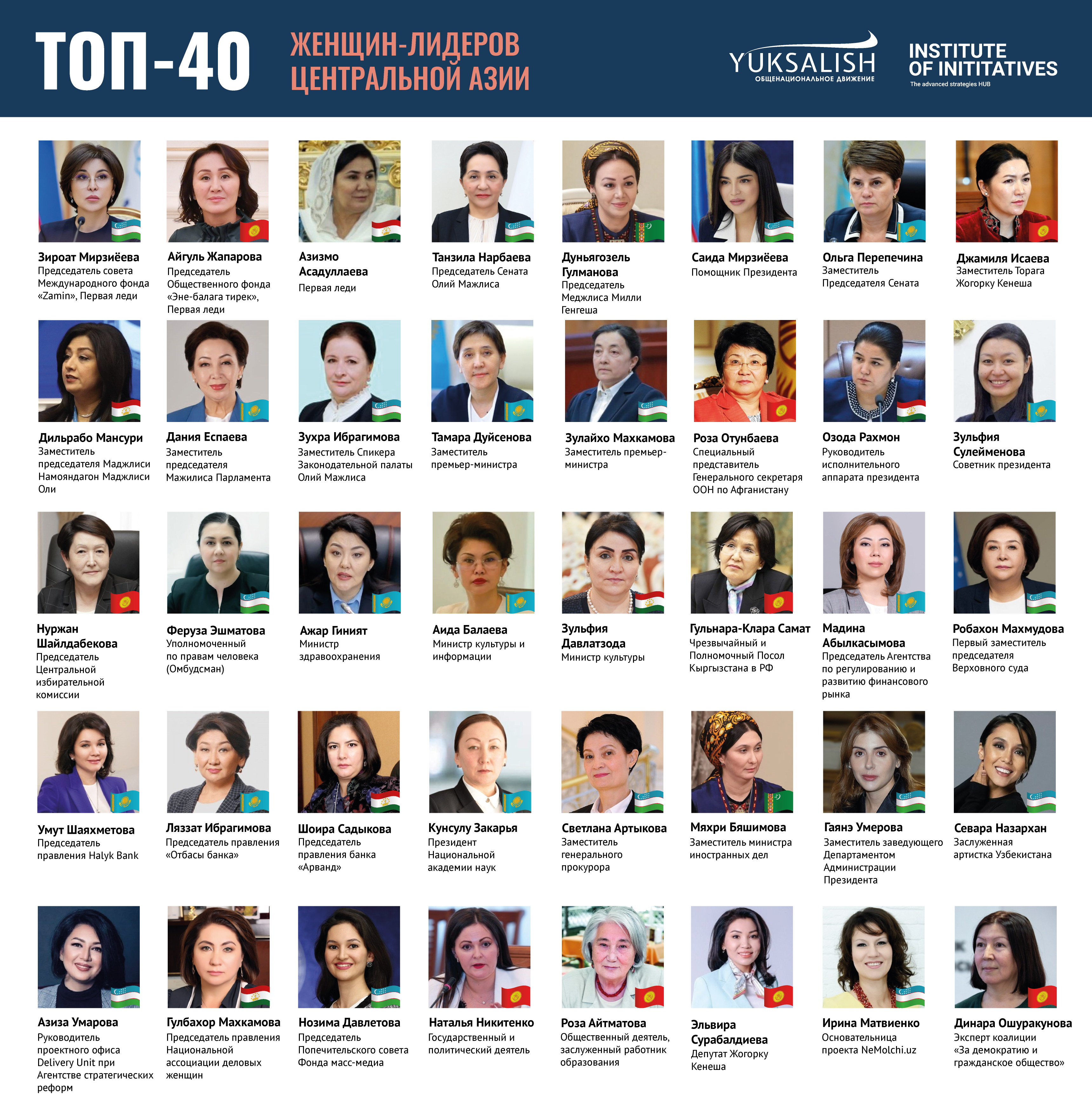 The Uzbek national movement "Yuksalish," in collaboration with the Institute of Social and Economic Initiatives and with the assistance of experts, compiled a rating of women leaders in Central Asia.
