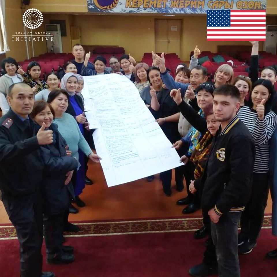 The International Public Foundation Roza Otunbaeva Initiative is implementing a project Reducing Domestic Violence through Gender Sensitization of CPDV members and activists in Tokmok city with the financial support of the U.S. Embassy in the Kyrgyz Republic and expresses its gratitude to the U.S. Embassy and the Department of State for the financial support.