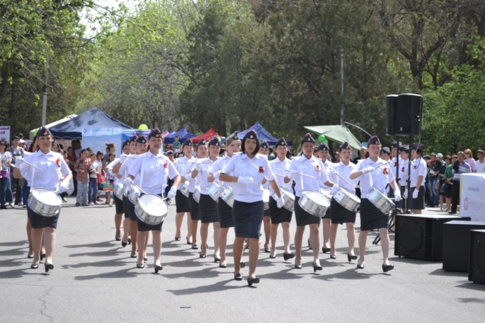 The event was opened drum platoon of police institution, which consisted of female cadets of the 1st and 2nd courses. In Oak Park Academy brass band sang war songs devoted to the World War II.