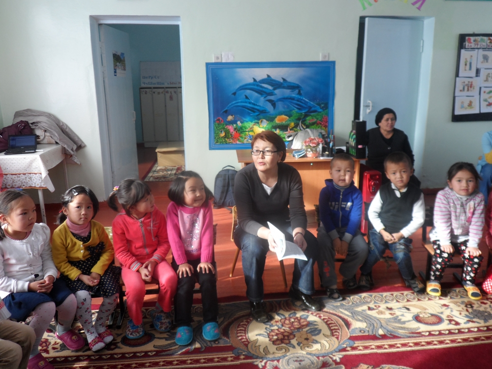 Аталган фондунун мүчөлөрү жеке менчик “Золотой улей” жана №3 “Келечек” мамлекеттик балдар бакчасын кыдырып, абалдары менен таанышып чыкты. “Золотой улей” балдар бакчасынын жетекчиси Раткан Жайлообаеванын айтымында, бала бакчанын ачылганына 1,5 жыл болгон. “Жылдыздар жомок окушат” акциясынын алкагында жаңыдан уйкудан ойгонгон балдарга “Мектеп-Школа” журналынын башкы редактору Миргүл Эсенгулова Гуля Чернованын “Батон, Бидон, Отунчу, Булакчы” деген жомогун окуп берүү менен Жалал-Абаддагы “Билим кербенин” ачты.