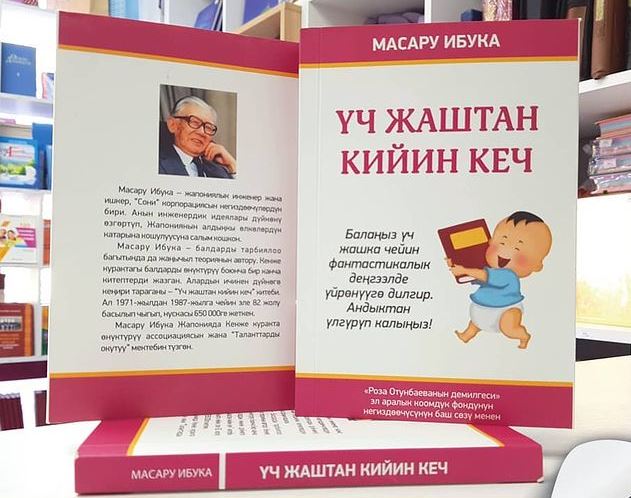 Китептин автору - «Sony» компаниясынын негиздөөчүсүн бири Масару Ибука. Китептин автору бала менен алгачкы күндөн тартып өтө дыкат алектене баштоо абдан зарыл экендигин белгилейт. Кенже курактагы балдар эмнени болбосун абдан жеңил үйрөнө аларын турмуштук мисалдардын негизинде, жалпак тил менен айтып берет. Балдардын толук кандуу өнүгүшүндө, бактылуу жана ийгиликтүү болушунда ата-эненин жана курчап турган чөйрөнүн чечүүчү мааниге ээ экендигине басым жасайт. Китеп балдар үчүн мыкты мүмкүнчүлүктөрдүн ачылышына жана алардын ар тараптуу өнүгүшүнө кам көргөн бардык ата-энелерге арналат. Баланы тарбиялоо боюнча дүйнөгө белгилүү болгон «Үч жаштан кийин кеч» китеби, «Роза Отунбаеванын демилгеси» эл аралык коомдук фонду тарабынан дярдалып, кыргыз тилине которулган. Кыргыз тилине которгон Асылбек Жоодонбеков, окуган Асылбек Өзүбеков.