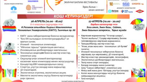 Силерди 26-27-апрелде шаардык масштабдагы иш-чарада – «Билим берүү фестивалында» күтөбүз!