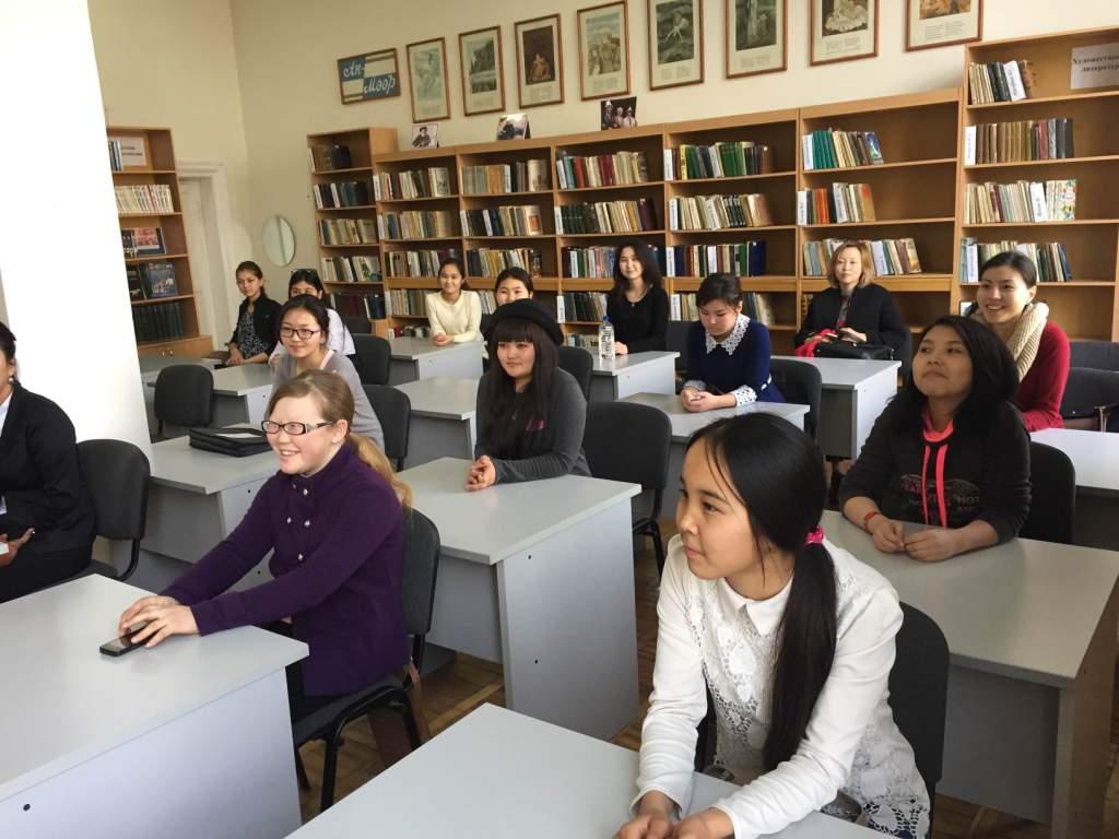 12-февралда «Устат» долбооруна катышкан кыз-келиндер 2014-жылдын жыйынтыктары боюнча Кыргызстанда мыкты китепкана аталган К.Баялинов атындагы Балдар жана өспүрүмдөр үчүн республикалык китепканага барды
