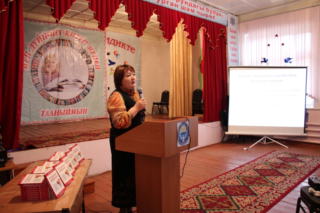 March 28, 2015, 06:002015-жылдын 27-мартында Ош шаарында М.Горький атындагы орто мектепте Сони корпорациясынын негиздөөчүлөрүнүн бири, “Кенже курактагы балдарды өнүктүрүү” ассоциациясынын негиздөөчүсү Масару Ибуканын дүйнөгө кеңири таанымал “Үч жаштан кийин кеч” аттуу китебинин кыргыз тилинде чыгарылышынын презентациясы болуп өттү. Презентациялоону “Р.И.Отунбаеванын демилгелери” эл аралык коомдук фондусунун аткаруучу директору Д.Кендирбаева өткөрдү.