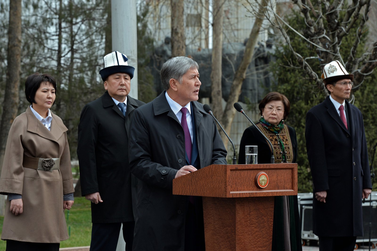 Кыргыз Республикасынын Президенти Алмазбек Атамбаев, Кыргыз Республикасынын экс-президенти Роза Отунбаева, Кыргыз Республикасынын Жогорку Кеңешинин Төрагасы Асылбек Жээнбеков, Кыргыз Республикасынын Премьер-министри Жоомарт Оторбаев жана Кыргыз Республикасынын Жогорку сотунун төрайымы Феруза Жамашева 2002-жылы Аксы окуяларында жана 2010-жылдын Апрель окуяларында Бишкек шаарынын «Ала-Тоо» аянтында элдин эркиндиги үчүн курман болгондордун жаркын элесине арналып тургузулган монументке гүлчамбар коюшту.