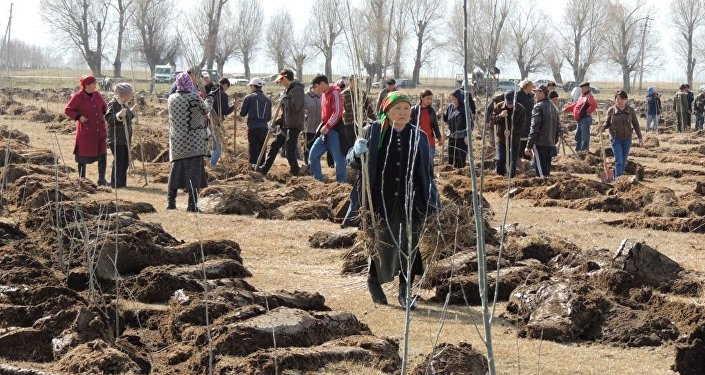 Кыргызстан Sputnik жамааты ишембиде эртең менен Кары жыгач багында бардыгы болуп ясендин 35 көчөтүн отургузду.
