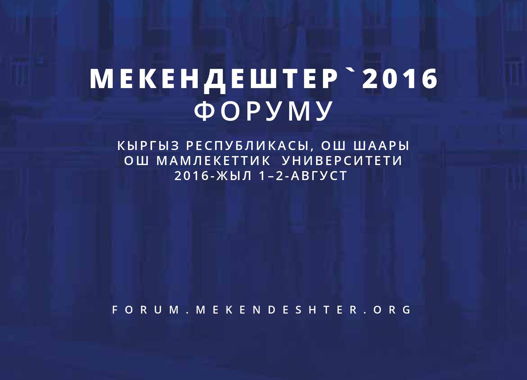 2016-жылдын 1-2-августунда Ош шаарында Ош мамлекеттик университетинин базасында мекендештердин үчүнчү «Мекендештер – 2016» форуму өтөт.