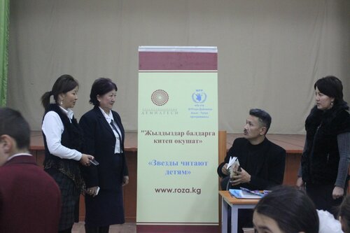 «Роза Отунбаеванын демилгеси» эл аралык коомдук фонду кезектеги “Жылдыздар балдарга китеп окуйт акциясын” Дордой жаны конушундагы № 94-мектепте өткөрдү. Бул жолу акциянын коногу болуп Кыргыз Республикасынын эмгек синирген артисти Турусбек Жумалиев келди. Т.Жумалиев башталгыч класстын балдарына “ Карышкыр жана жети улак” аттуу эл жомогун окуп берди. Акциянын аягында балдарга ырдап,бийлеп жана тарбялык насаат сөздөрүн да айтып өттү.Мектептеги бул жолугушуу абдан кызыктуу жана көңүлдүү маанайда өттү.