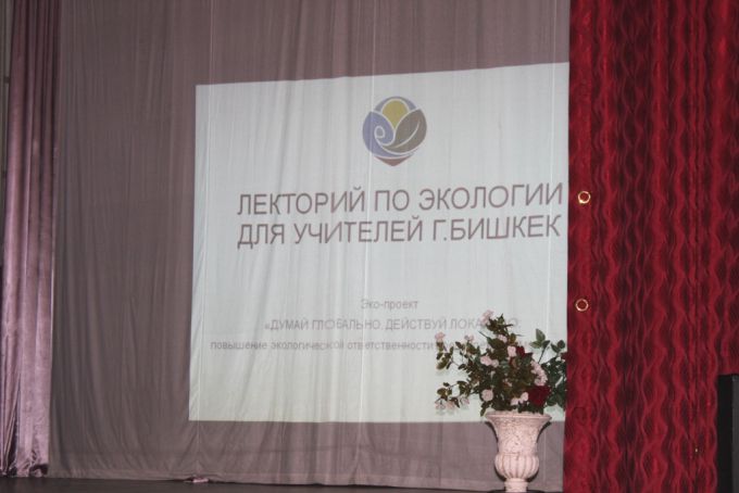 Мугалимдер үчүн бул лекторий «Глобалдуу ой жүгүрт, чөлкөмдө аракеттен: балдар жана жаштар арасында экологиялык жоопкерчиликти жогорулатуу» эко-долбоорунун алкагында өткөрүлүп жатат жана «Роза Отунбаеванын демилгеси» фонду тарабынан Бишкек шаарынын мэриясынын Билим берүү башкармалыгы менен кызматташтыкта уюштурулду.