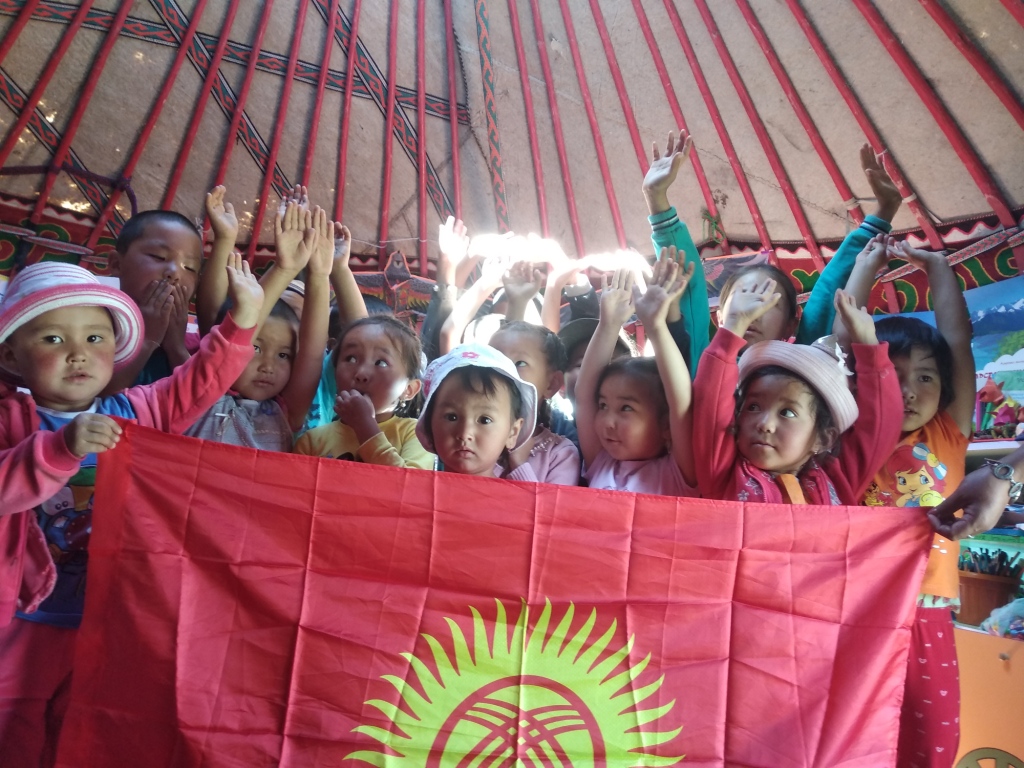 Улуттук Кызыл Ай коомунун ыктыярчылары жайлоо бала бакчаларында