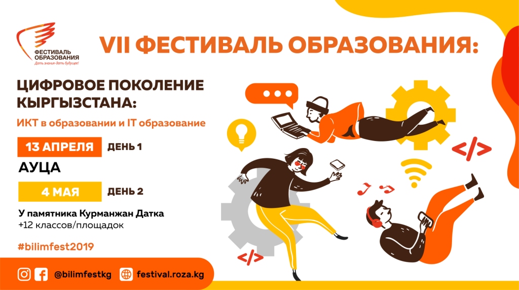 13-апрелде Борбордук Азиядагы Америка Университетинде (БААУАУЦА) VII Билим Фестивалынын «Кыргызстан санарип мууну: Билим берүүдөгү жана IT билим берүүдө МКТ» аттуу темадагы биринчи күнү өтөт. VII Билим Фестивалы катышуучуларга жана меймандарга университет менен жакындан таанышууга, билим берүүдөгү маалыматтык-коммуникациялык технологиялар (МКТ) жана билим берүү системасындагы ITни колдонуунун мүмкүнчүлүктөрүн талкуулоого, ошондой эле жогорку класстардын окуучуларына МКТ жана IT тармагындагы болочок эрте кесиптик багыт берүүгө арналган мастер-класстардын сериясын көрүүгө өбөлгө түзөт. Бишкек шаарынын окуу жайларынын окутуучулары информатика жана англис тили сыяктуу предметтерден окутуунун инновациялык усулдары боюнча жаңы билимдерге жана көндүмдөргө ээ болушат. Окуучулар менен студенттерге IT боюнча адистерди даярдап жаткан ЖОЖдордун жана лицейлердин кесиптик багыт берүү көргөзмөлөрү көрсөтүлүп, Билим берүү боюнча кызмат көрсөтүүлөрдүн жарманкеси жана Борбордук Азиядагы Америка Университетинин факультеттеринин көргөзмөлөрү уюштурулат.
