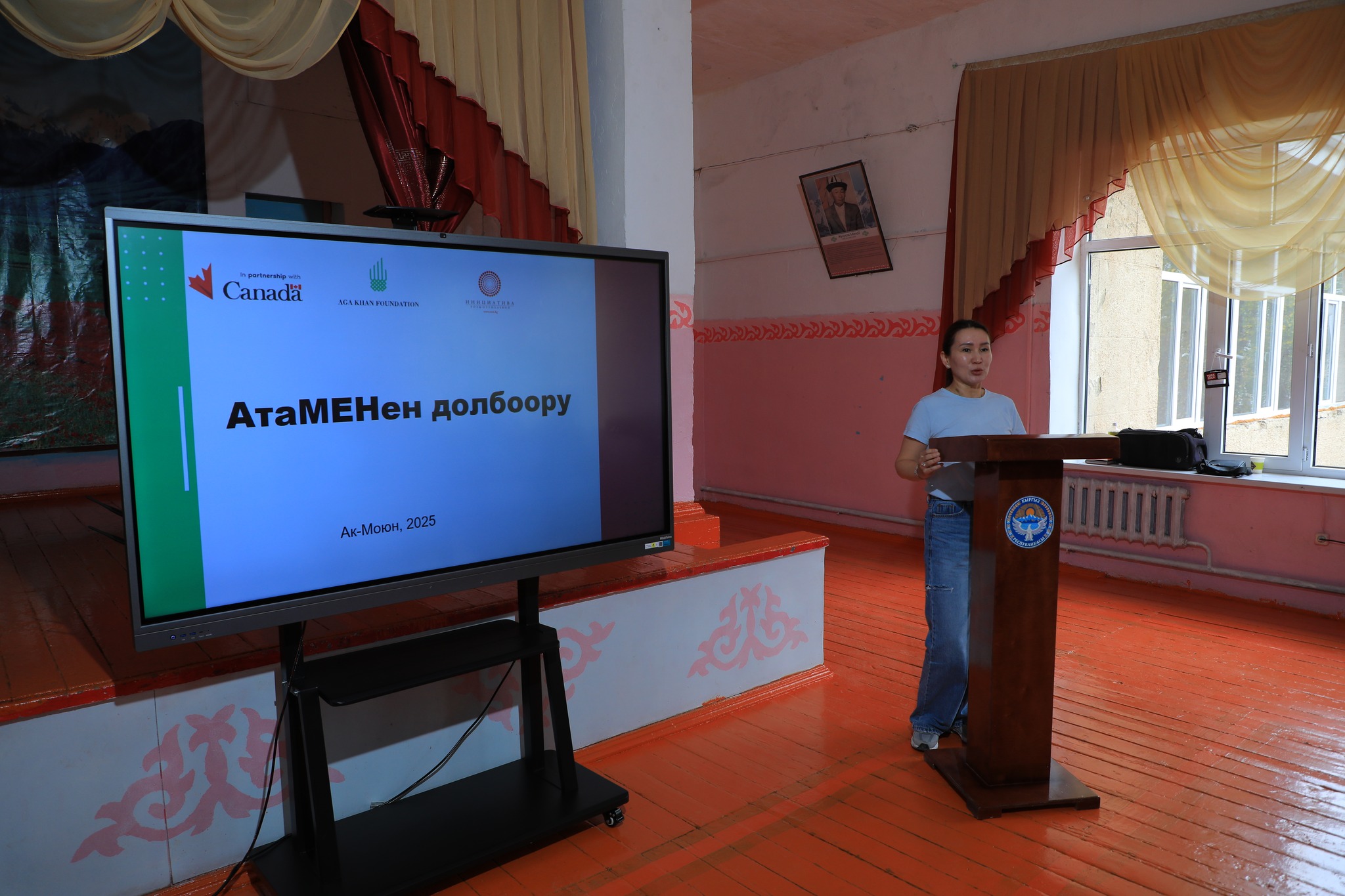 Долбоорду баштоо иш-чарасы 2025-жылдын 16-сентябрында Нарын облусунун Ат-Башы районунун Ак-Моюн айылында өткөрүлдү. Иш-чарага Ат-Башы райондук акимчилигинин жетектөөчү адиси Үмөталиев Каныбек, Ат-Башы райондук билим берүү борборунун директору Шакеева Асыл, Фонддун аткаруучу директору Кайыкова Роза, Ак-Моюн айыл аймагынын башчысы Молдоев Бердибек, Ага Хан Фондунун өкүлү Икрамова Асель, мектеп жана бала бакчалардын директорлору, мугалимдер, тарбиячылар, активисттер жана ата-энелер катышты.