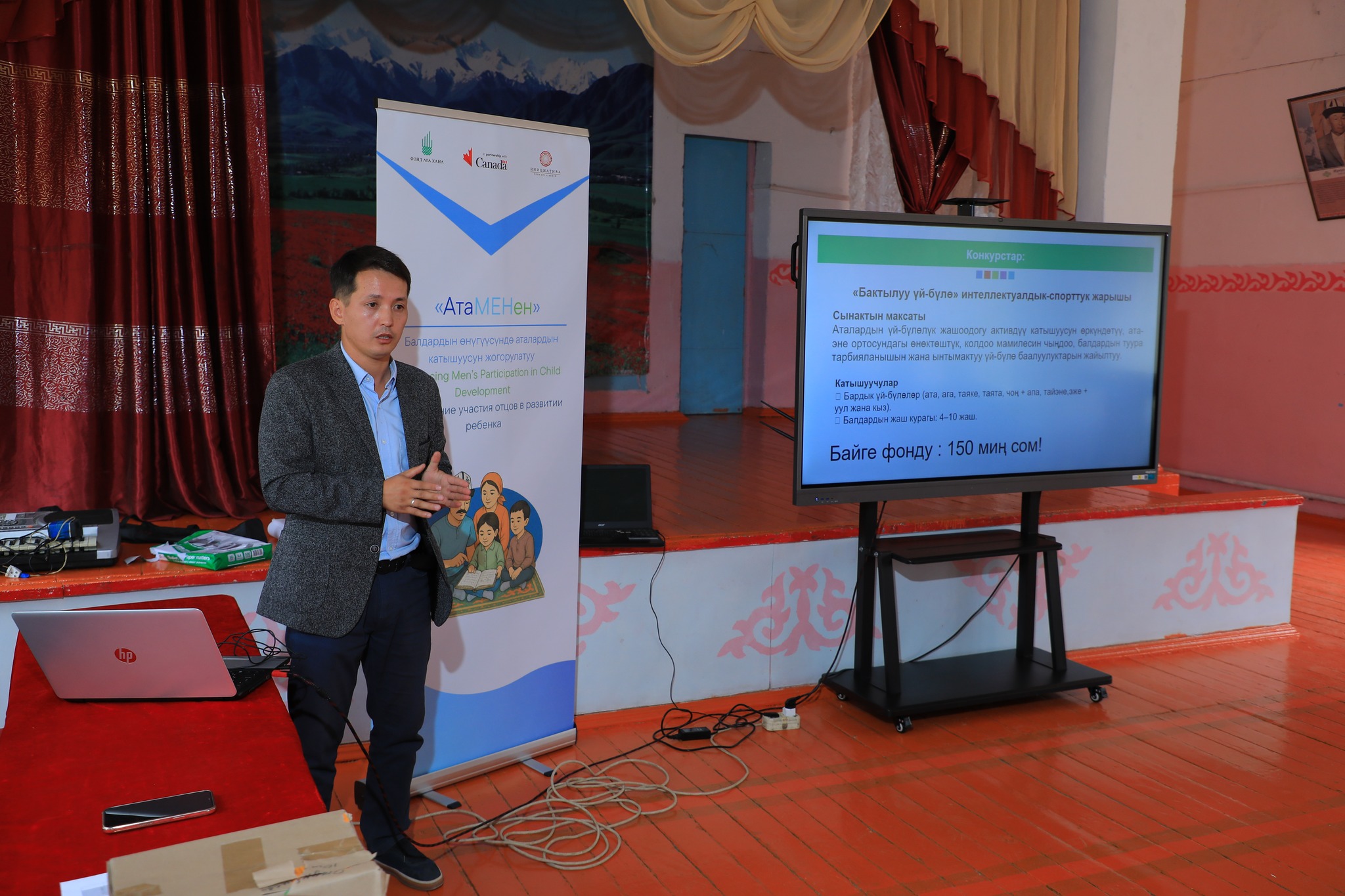 Фонддун аткаруучу директору Роза Кайыкова долбоордун биринчи этабынын жыйынтыктары менен бөлүшүп, алдыдагы пландарга токтолду. Ал долбоор алкагында кичи гранттар каралганын белгилеп, балдардын өнүгүүсүнө түрткү берген жана аталардын бала тарбиялоодогу катышуусун жогорулатууга багытталган демилгелер жергиликтүү коомго чоң пайда алып келет деген үмүтүн билдирди. Жергиликтүү башкаруу органдарына жана Райондук билим берүү бөлүмүнө Фонд тарабынан басып чыгарган "Өмүрү өрнөк инсандар" топтомундагы китептерден жана "365 кызыктуу илимий эксперимент" китебин белекке берди.
