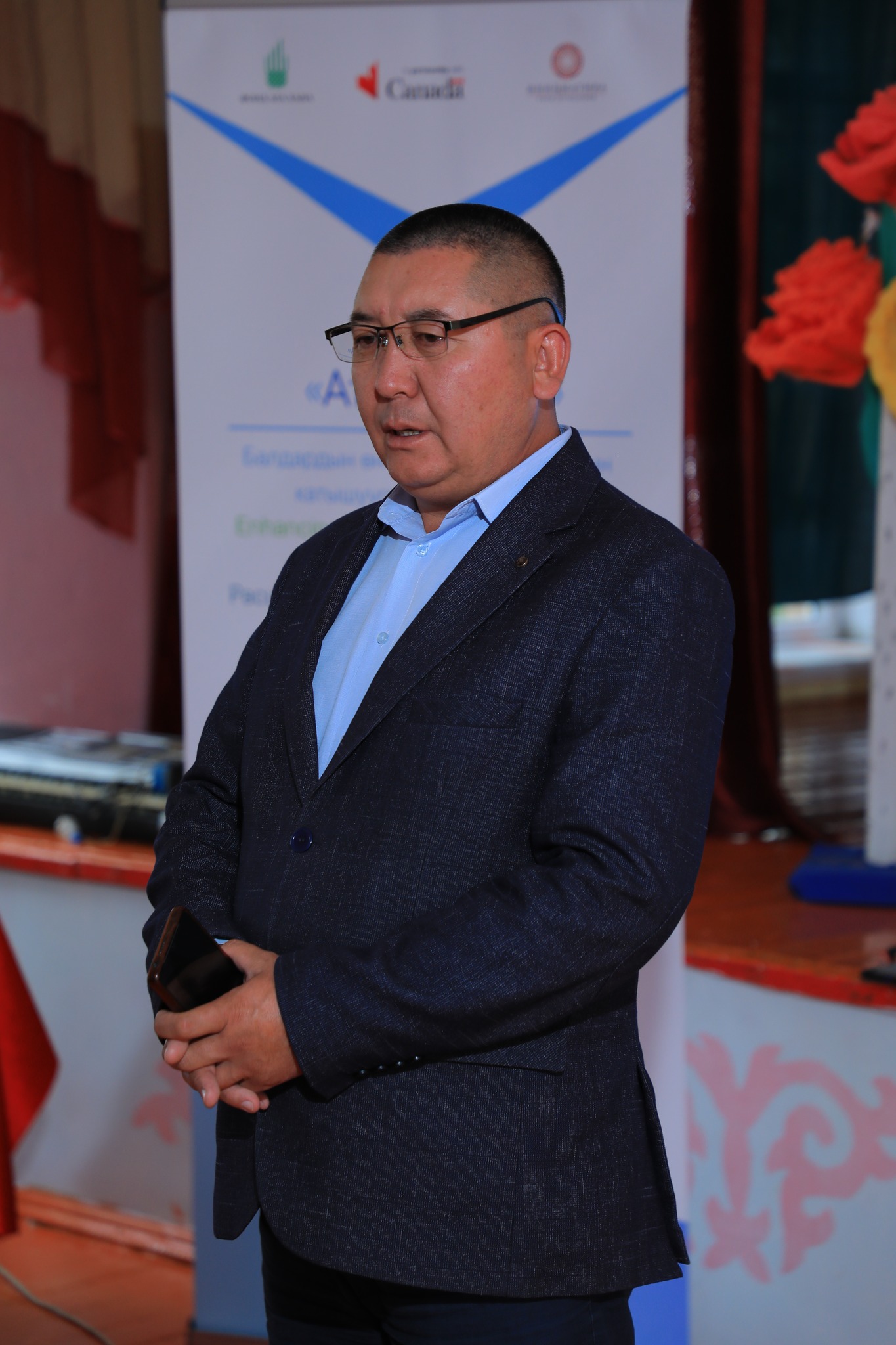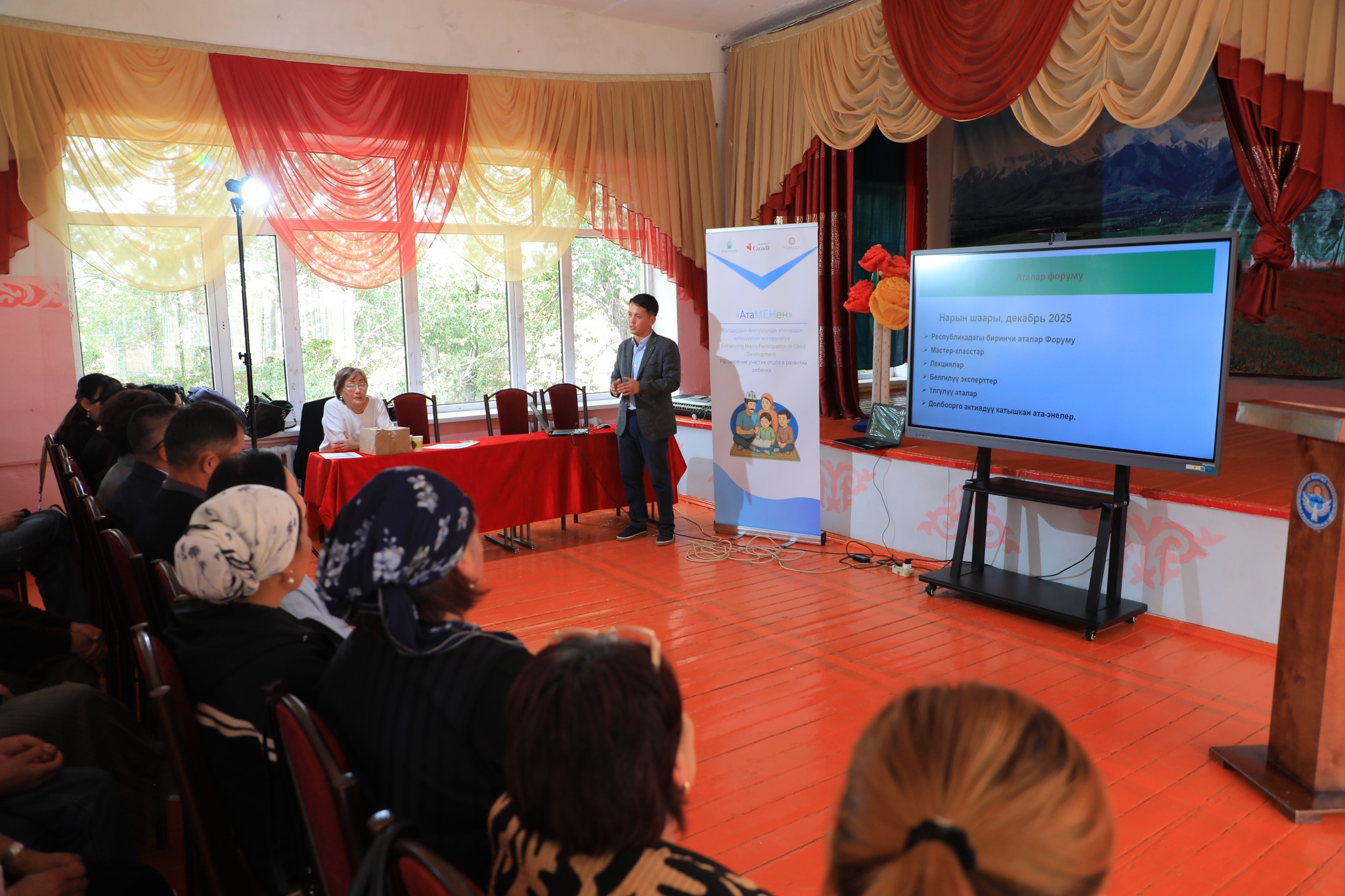 Иш-чараны ачкан Ак-Моюн айыл аймагынын башчысы Молдоев Бердибек айыл өкмөтү долбоордун багыттуу топ катары тандалганына ыраазычылыгын билдирип, айыл тургундарын демилгелүү болуп, долбоордон пайдалуу маалымат алып, үй-бүлө жана коом үчүн жакшы жыйынтык көрсөтүүгө чакырды.