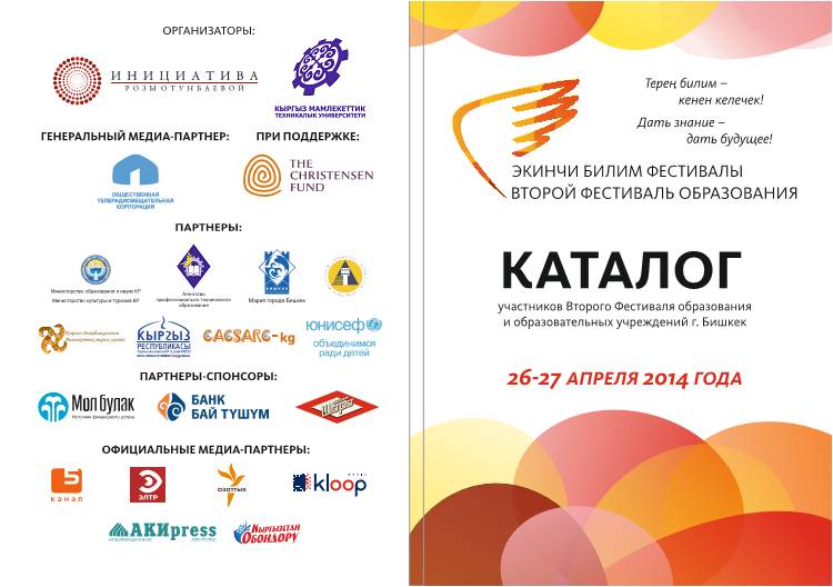 Сиздерге «Экинчи Билим берүү фестивалынын катышуучуларынын жана Бишкек шаарынын билим берүү мекемелеринин каталогун» сунуш кылабыз. Сиздер андан ар кыл билим берүү кызмат көрсөтүүлөрү, билим берүү үчүн товарлар, билим берүү мекемелери, ушундай кызмат көрсөткөн жана/же товарларды саткан (чыгарган) фирмалар жана уюмдар жөнүндө маалыматтарды таба аласыздар. Биздин «Каталогубуз» - бул борбор шаарыбыздын билим берүү кызмат көрсөтүүлөр чөйрөсүндөгү багыт берүүчү.