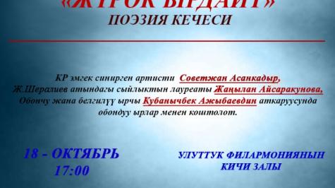 18-октябрда Поэзия кечесинин жаңы сезону ачылат! Сиздерди кайрадан Поэзия кечесине чакырабыз! Калтырбаңыздар! Шашылыңыздар!