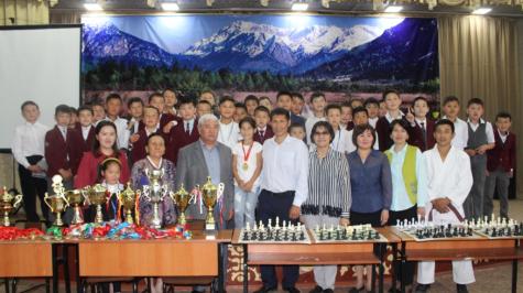 Эне-Сай конушунун окуучулары чемпиондор менен шахмат ойношту