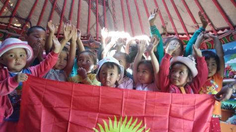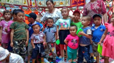 Улуттук Кызыл Ай коомунун ыктыярчылары жайлоо бала бакчаларында