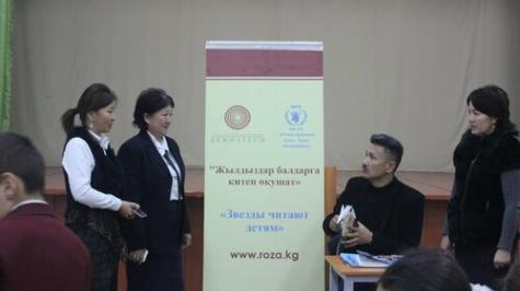 Жылдыздар балдарга китеп окуйт акциясынын коногу Кыргыз Республикасынын эмгек синирген артисти Турусбек Жумалиев болду