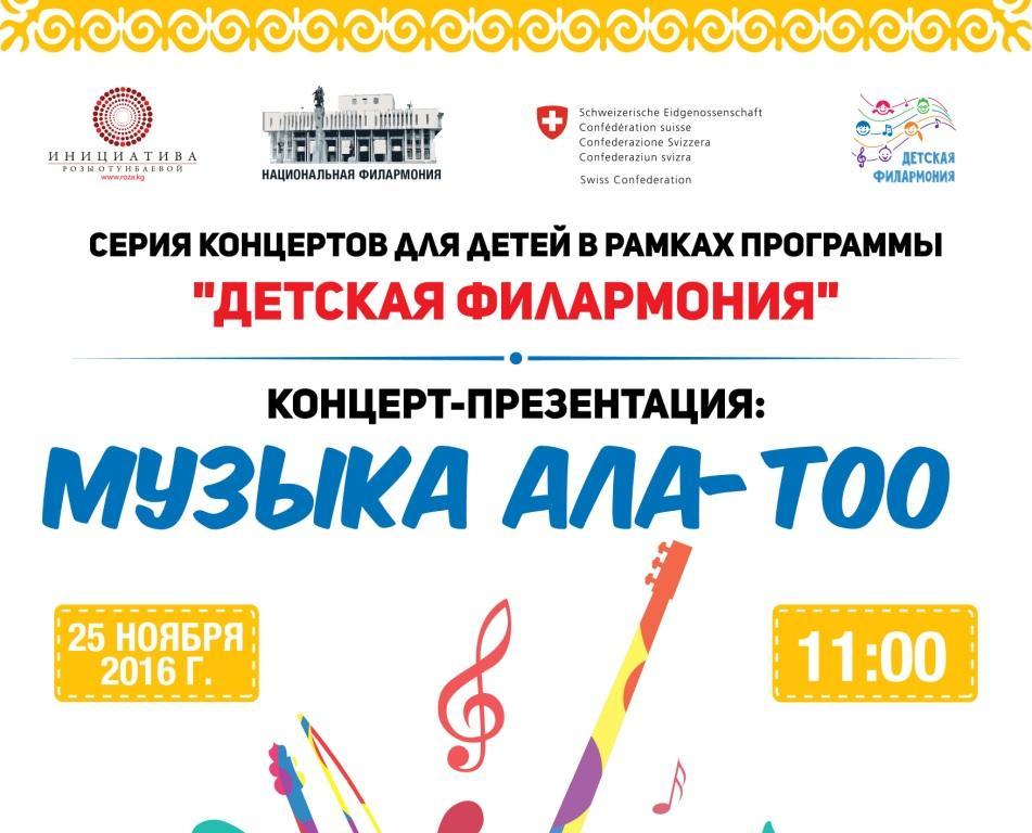 Кымбаттуу достор, баарыңарды "Балдар филармониясы" музыкалык-билим берүүчү программанын алкагында "Ала-Тоо музыкасы" концерт-презентациясына чакырабыз.