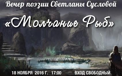Светлана Суслованын «Балыктардын унчукпагандыгы» («Молчание Рыб») поэзия кечесинин пресс-релизи