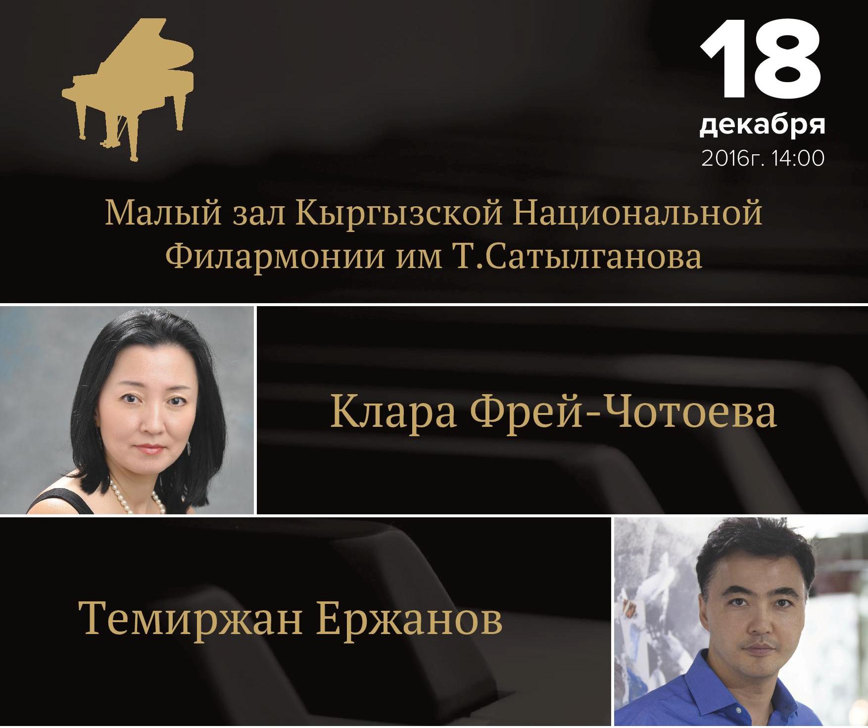 Приглашаем всех любителей классической фортепианной музыки 18 декабря, в воскресенье, на концерт фортепианного дуэта из США, наших соотечественников - Клары Чотоевой-Фреи и Темиржана Эржанова.