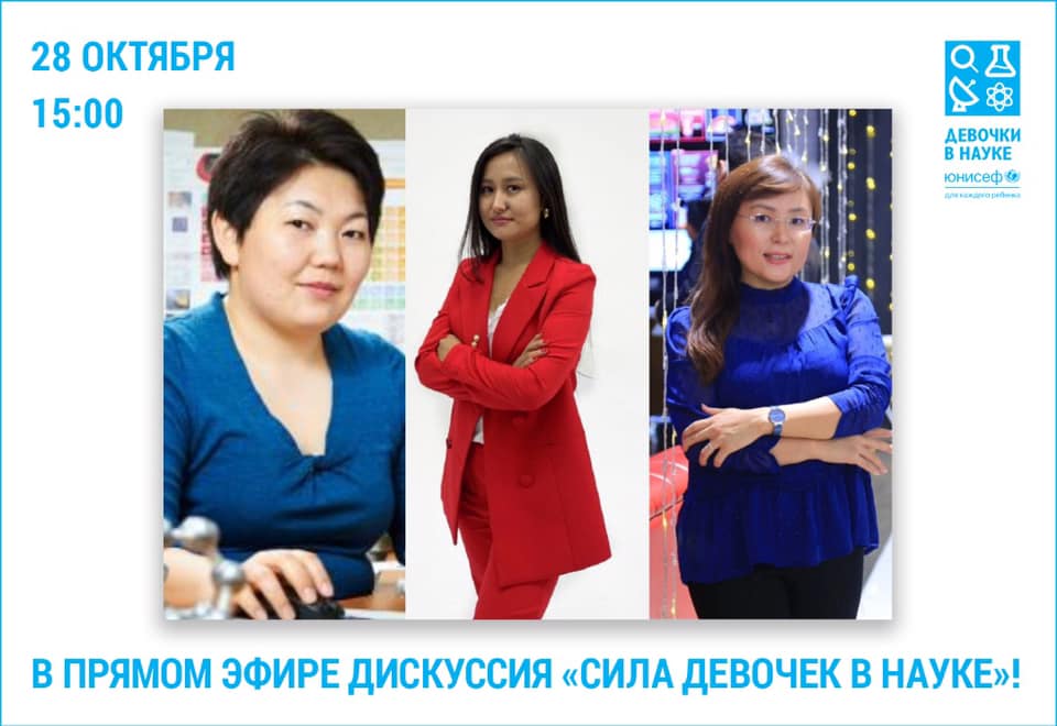 В рамках проекта ЮНИСЕФ «Девочки в науке» будет проведена дискуссия «Сила девочек в науке».⠀Девочки Кыргызстана встретятся с женщинами - выдающимися представительницами сферы науки, технологии, инженерии и математики (STEM). Цель – обсудить стремления девочек в области науки и лидерства, а также будущие карьерные возможности в сфере STEM.⠀⠀Почётные гостьи и спикерки: ⠀⠀Доктор Асель Сартбаева, всемирно известная ученая, член Королевского Научного Общества Великобритании, научный сотрудник Университета Бата.⠀⠀Айзада Акбекова, экономист - программист немецкой многонациональной корпорации – производителя программного обеспечения.⠀⠀Чолпон Абдыжапарова - инженерка Facebook.⠀⠀Мероприятие будет проходить в онлайн формате на Фейсбук-каналах UNICEF Kyrgyzstan и новостного агентства Limon.kg ⠀Завтра, 28 октября, с 15.00 по 16.40