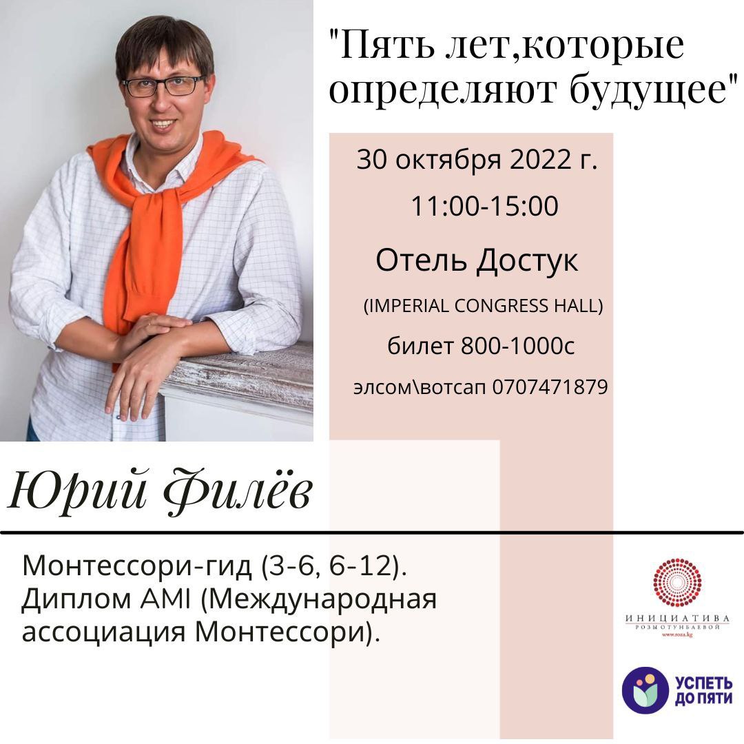 Международный общественный фонд «Инициатива Розы Отунбаевой» к 10-летию Фонда возобновляет программу Лекторий «Школа детства» и приглашает Вас на лекцию замечательного Монтессори-педагога/гида Юрия Филева.