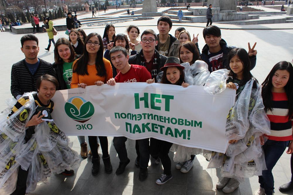 В Бишкеке прошел экологический флешмоб против использования пластиковых пакетов
