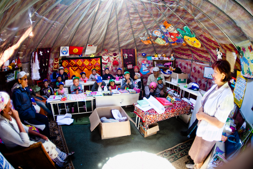 Проект «Садики на джайлоо» дает возможность детям скотоводов, уходящих в летнее время в горы, подготовиться к школе. Преподаватели по три часа в день проводят обучающие занятия, способствующие развитию речи, счета и других необходимых навыков.