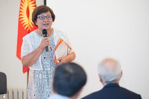 Лекцию Джамила Салми посетили зам. министра образования и науки Адилет Бекбоев (первый ряд, слева), Шамш Кассим-Лакха (первый ряд в центре), исполнительный председатель исполнительного комитета УЦА и Роза Отунбаева (первый ряд, справа), экс-президент Кыргызской Республики.