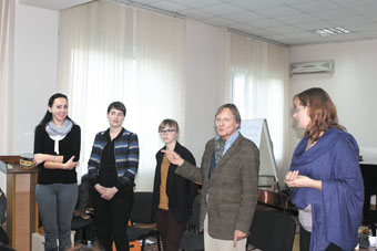 Во многих европейских медучреждениях есть комнаты музыкальной терапии, имеется и специальность музыкального терапевта. Одним из пионеров этого направления в Европе считается профессор Декер–Фойгт — доктор философии, психолог, практикующий музыкотерапевт, писатель, декан факультета музыкотерапии Высшей музыкальной школы Гамбурга. Именитый специалист приехал к нам по приглашению фонда “Инициатива Розы Отунбаевой” и детского реабилитационного центра “Умут — Надежда”. Профессор прибыл с двумя коллегами — музыкальными терапевтами Моникой–Терезой Хуг–Антинг и Тиной Поссельт, которые проводили с нашими специалистами практические упражнения.