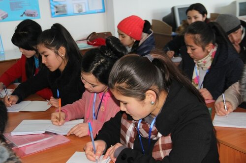 30 старшеклассниц каждый день, с 8:30-17:00, с понедельника по пятницу изучают такие предметы как математика, физика, химия, кыргызский язык и английский языки. Занятия ведут учителя школы-интерната для одаренных детей имени У.Салиевой г. Ош.