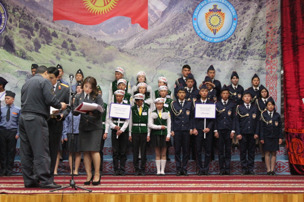Напомним, что с января 2016г. конкурс «Юный друг милиции» был проведен среди школьников всего Кыргызстана и, занявшие первые места в городских турах конкурса, приняли участие в Республиканском конкурсе, который прошел в Актовом зале МВД КР.