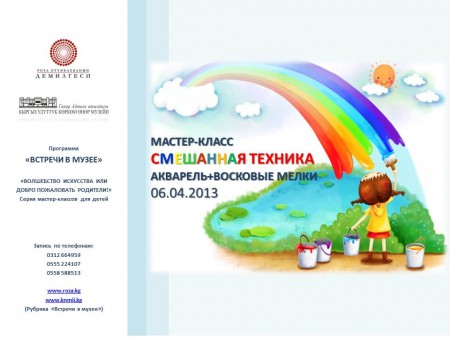Мастер-класс для детей по смешанной технике — акварель + восковые мелки состоится 6 апреля в 15.00. Предусмотрена оплата в размере 150 сомов для покрытия расходов на расходные материалы и гонорар тренера.