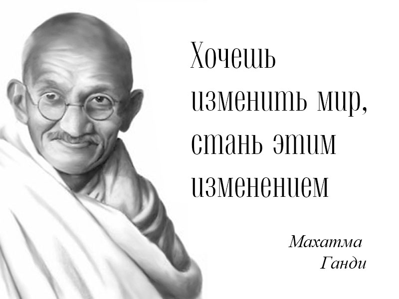 Мохандас Карамчанд Ганди (1869-1948) один из лидеров индийского национального освободительного движения, его идеолог. Идеи Ганди смогли изменить сознание многомиллионного населения Индии, став поворотом к росту национального самосознания, межконфессиональному и межкастовому диалогу, мирному развитию страны.