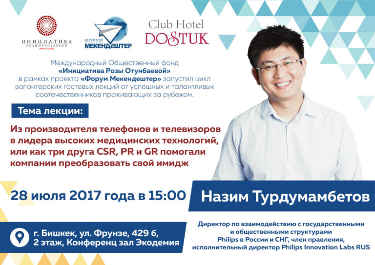 Данное мероприятие проводится в рамках образовательной программы «Волонтерские гостевые лекции Мекендештер» реализуемой проектом “Форум Мекендештер” МОФ «Инициатива Розы Отунбаевой».