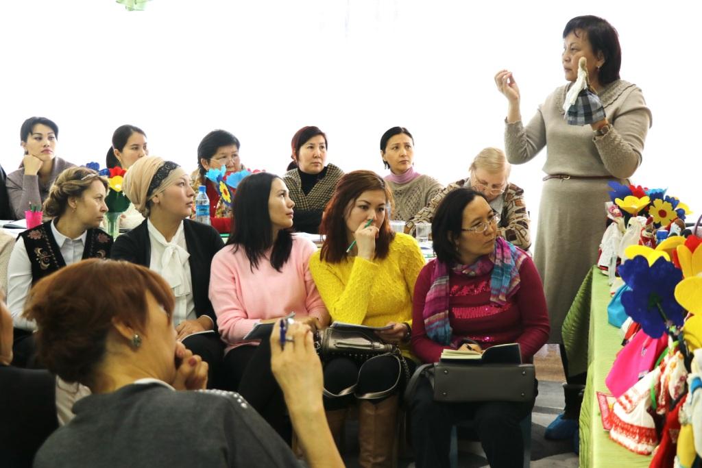 Профессор Уметов рассказал участникам семинара о важности и значении традиционных знаний в процессе воспитания детей. О применении традиционных знаний в детских садах рассказала воспитателям ДОО писатель Жылдыз Акаева. Так, участники семинара на примере, изготовленных писательницей, этнических кукол чий куурчак (соломенная кукла) познакомились с традиционными знаниями кыргызского народа.