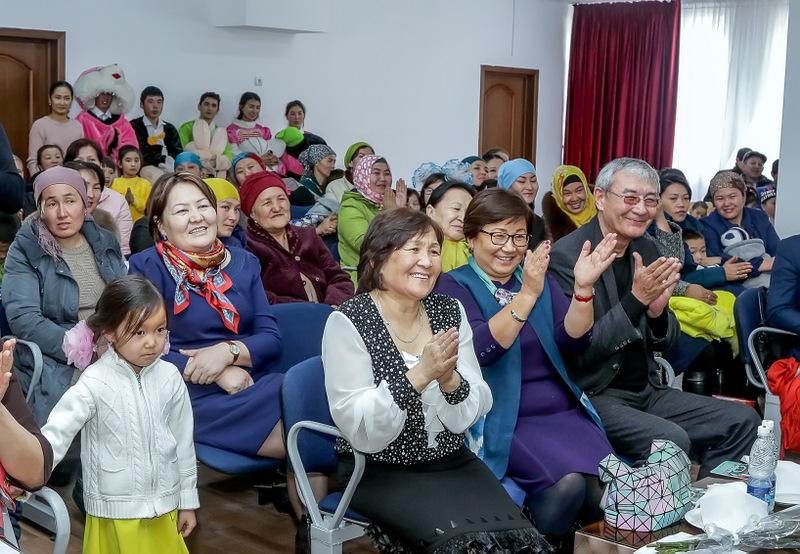 Малыши-дошколята, ребята которые посещают тренинги МЦР и Материнскую школу «Шер бала» открыли мероприятие приветствием учредителю Фонда Отунбаевой Р.И. и песней-посвящением «Апам жакшы баарынан».