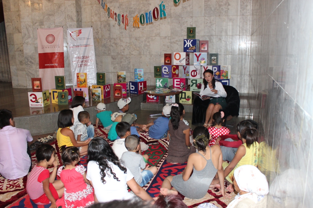 По официальным данным в Кыргызстане 86% детей до 7 лет не посещают дошкольные образовательные учреждения, низкий уровень книгоиздательства, а также снижение интереса к чтению художественной литературы стали мотивом для проекта «Звезды, читающие детям». Проект «Звезды, читающие детям» направлен на то, чтобы популяризировать культуру чтения, как среди детей, так и среди взрослых, привить детям идею о ценности книг.
