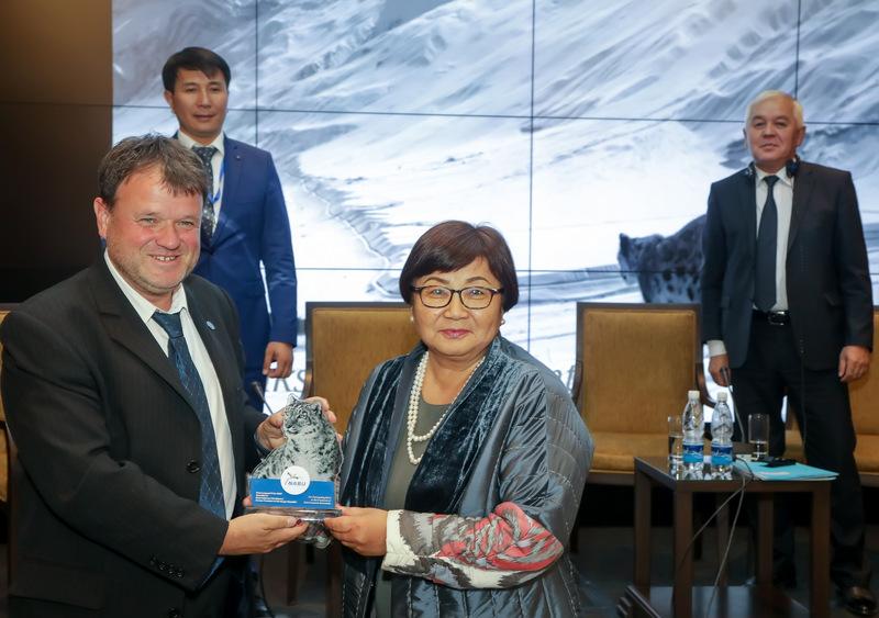 October 24, 2018, 06:00Вручение Первой премии NABU "Снежный барс" экс-Президенту КР, основателю ОФ «Инициатива Розы Отунбаевой» Розе Отунбаевой за активную деятельность по реализации экологических проектов, присуждаемую за огромный вклад в сферу охраны окружающей среды, снежного барса и ареала его обитания, повышения экологической ответственности среди детей и молодежи.
