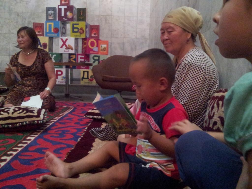 Жылдыз Акаева также поинтересовалась у детей, какие сказки они знают. Девочка Асыл рассказала всем сказку про белого козленка. Дайфулла Жумабаев, ученик 11 школы, рассказал всем историю о птичке. Выяснилось, что мама Сабира часто читает ему сказки. Его друг и одноклассник Мурат Эшенкулов рассказал известную всем сказку «Сила в единстве» о семи прутьях. Пятилетний Арген Эркинбеков с удовольствием рассказал всем сказку о козленочке. Его мама, Самара Сыдыкова, тоже читает сыну сказки каждый день перед сном. Мальчик обещал прийти в следующий раз и рассказать слушателям новый рассказ.