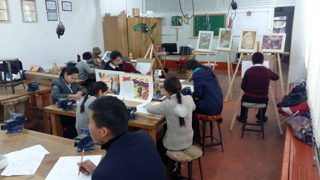 В рамках проекта "Современное искусство - детям" при школе № 6 г.Талас работает студия ИЗО, которую посещают 20 детей разных возрастов из трех школ города Талас. Все занятия бесплатные. Для детей это возможность раскрыть свой талант в области рисования или наоборот, попробовать свои силы в рисовании. В прошлом, 2018 году, трое детей, которые посещают занятия в студии при музее Герцена, уже завоевали места на районном конкурсе рисунков.
