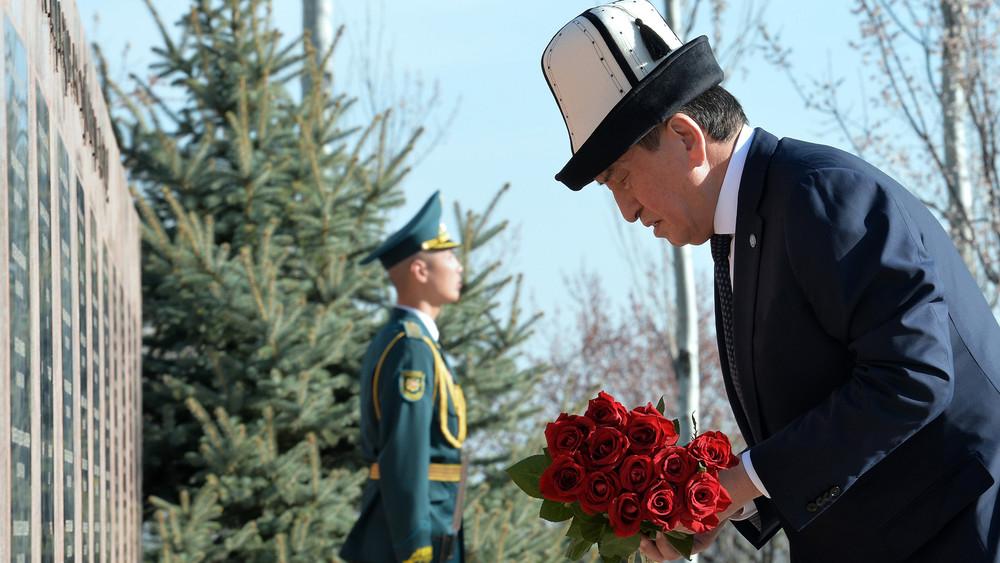 Глава государства возложил цветы к Мемориалу героев народной Апрельской революции 2010 года в Национальном историко-мемориальном комплексе «Ата-Бейит». Была прочитана поминальная молитва.