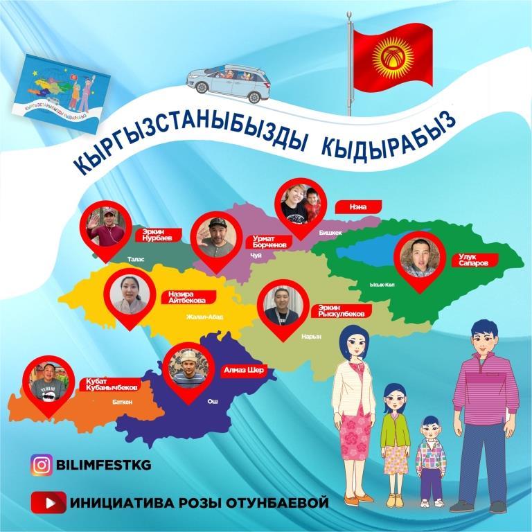 В период карантина, когда все вынуждены сидеть по домам, мы решили записать книгу «Изучаем наш Кыргызстан» и попутешествовать с нашими героями Эркинай и Бекжан и их родителями по 7 областям нашей страны, и познакомиться с достопримечательностями - «визитными карточками» каждой из областей. В этом нам помогли известные и популярные люди нашей страны, которые ее озвучили, и в конце каждой главы объявили конкурсы!