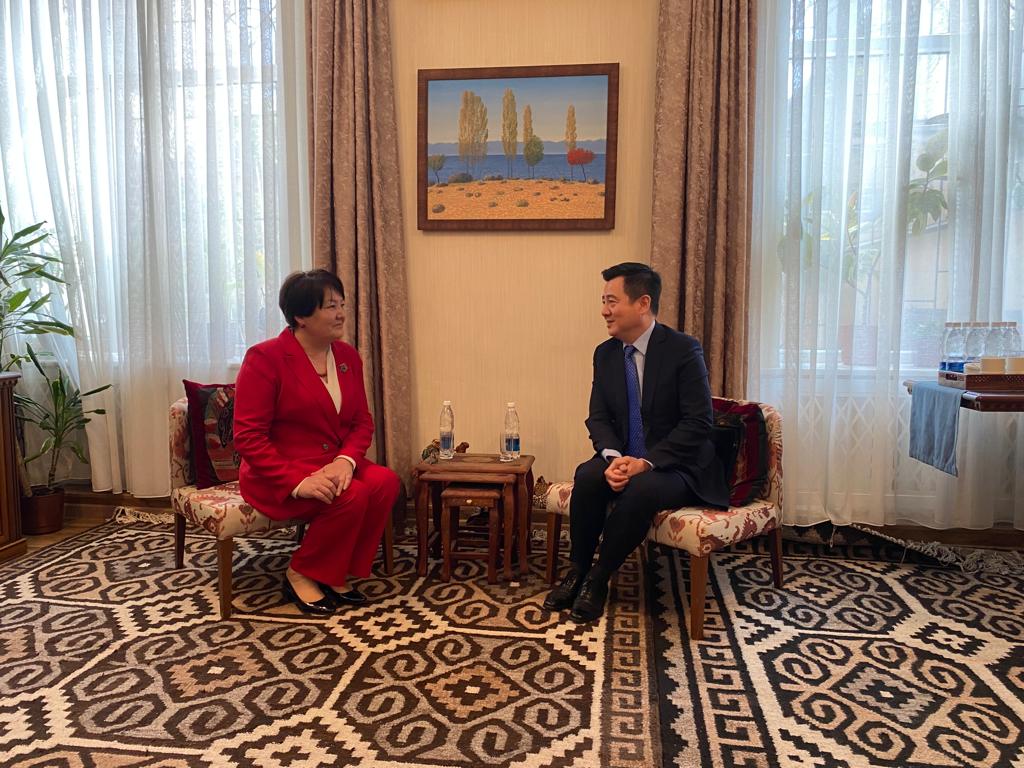 Исполнительный директор Фонда Кендирбаева Догдуркуль и руководитель Центра вещания на Европу и Азию Цзян Юнган обменялись мнениями по актуальным вопросам и приоритетным направлениям двустороннего сотрудничества.