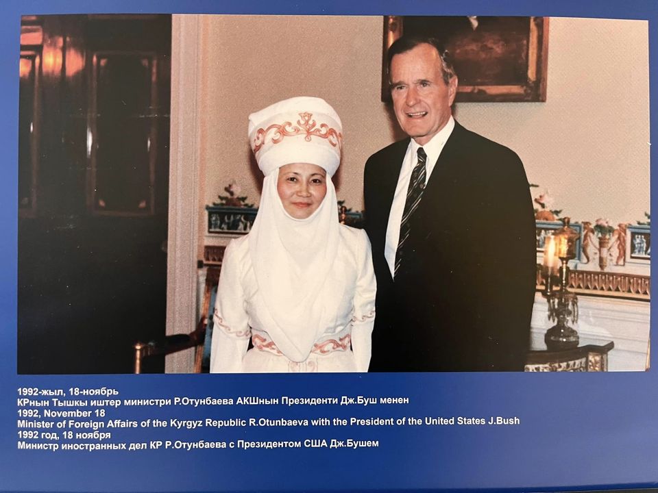 Большое количество исторических фотографий Учредителя Фонда, Экс-президента Кыргызской Республики, трижды Министра Иностранных Дел Отунбаевой Розы Исаковны, представленных на выставке лишний раз доказывает значимость и огромную роль Розы Исаковны в развитии кыргызской дипломатии.